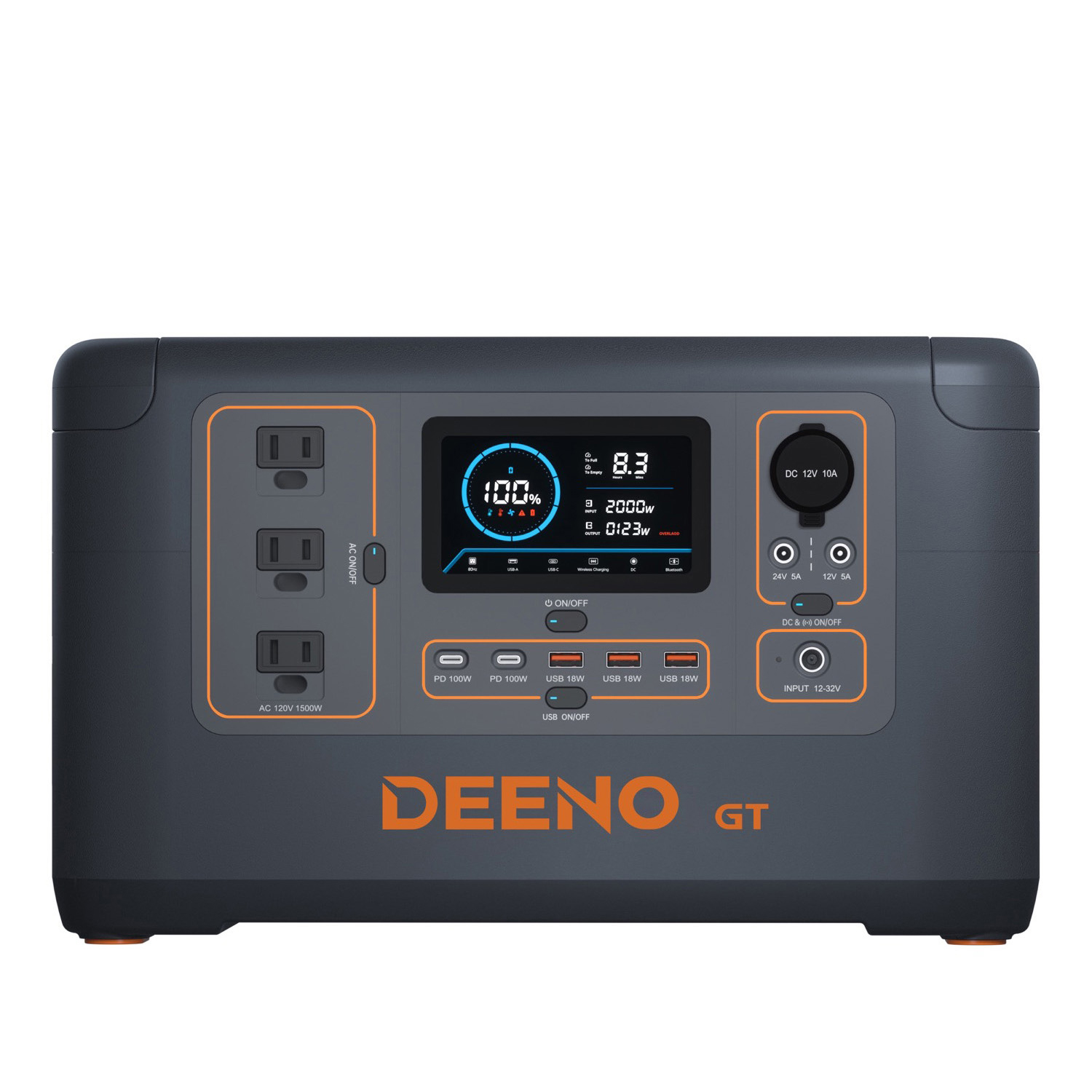 DEENO S1500は、3つのUSB-Aポート、2つのUSB-C出力ポートに加え、さらにワイヤレス充電、DC出力、カーチャージャー、AC出力ポートを3ポートを装備。同時に12台のデバイスに電源供給が可能です。